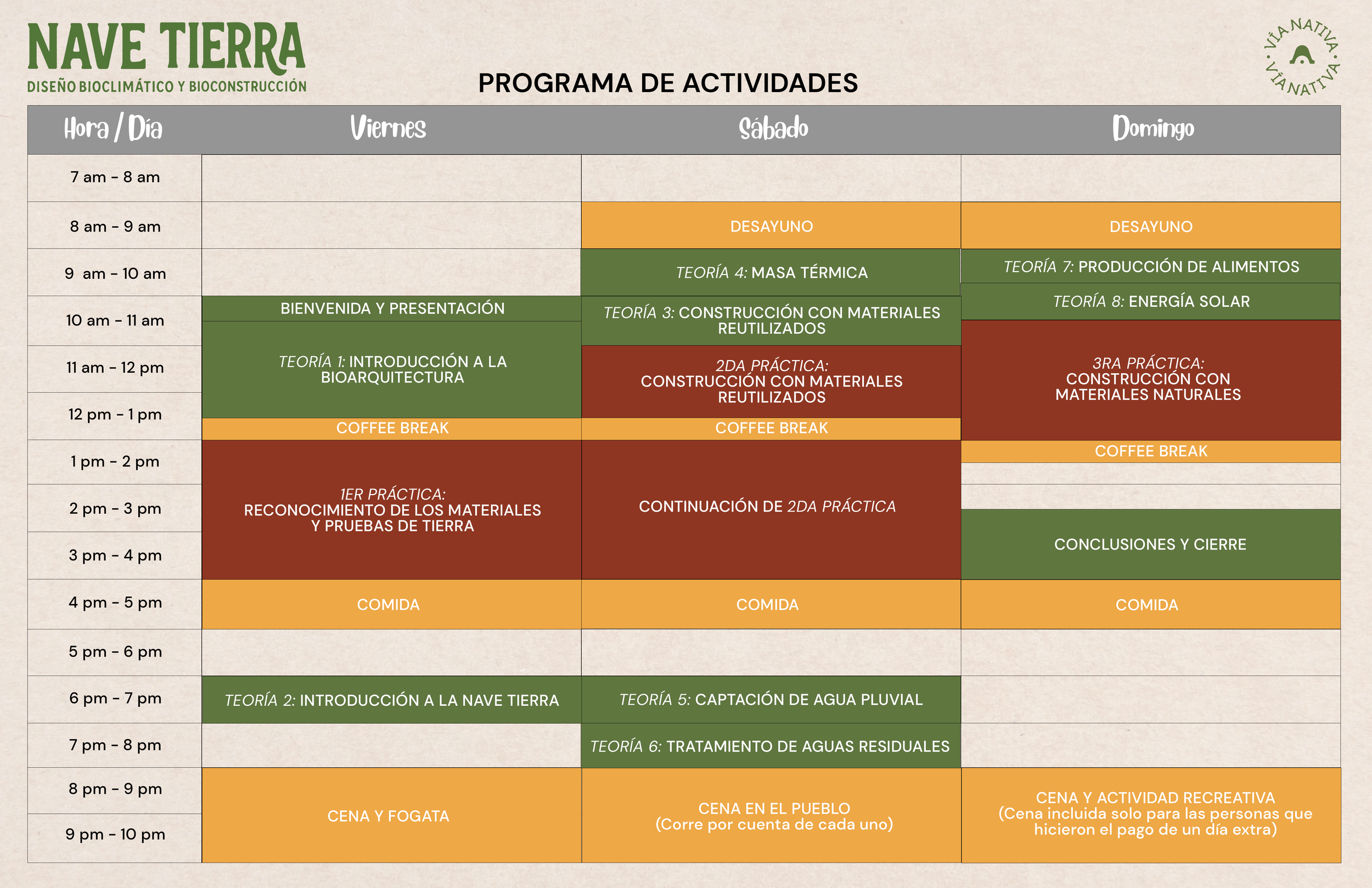 Con Vía Nativa, proyecto que fundé en 2023, he podido unir diseño, educación y comunidad: transmitiendo saberes, acompañando proyectos de eco-aldeas y viviendas autosostenibles, y sobre todo, sembrando semillas de transformación en quienes buscan construir una vida más simple y consciente.